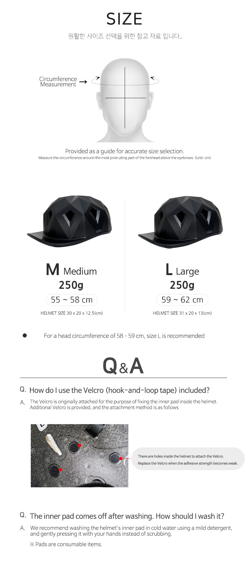 기능성 매쉬소재로 라이딩시 흘리는 땀을 빠르게 배출해주어 쾌적하고 간편한 탈부착 방식으로 단독세탁할 수 있어 위생적이며, 푹신한 쿠션감으로 머리를 부드럽게 감싸주어 편안하고 충돌시 머리의 충격을 한번 더 막아주어 안전합니다.