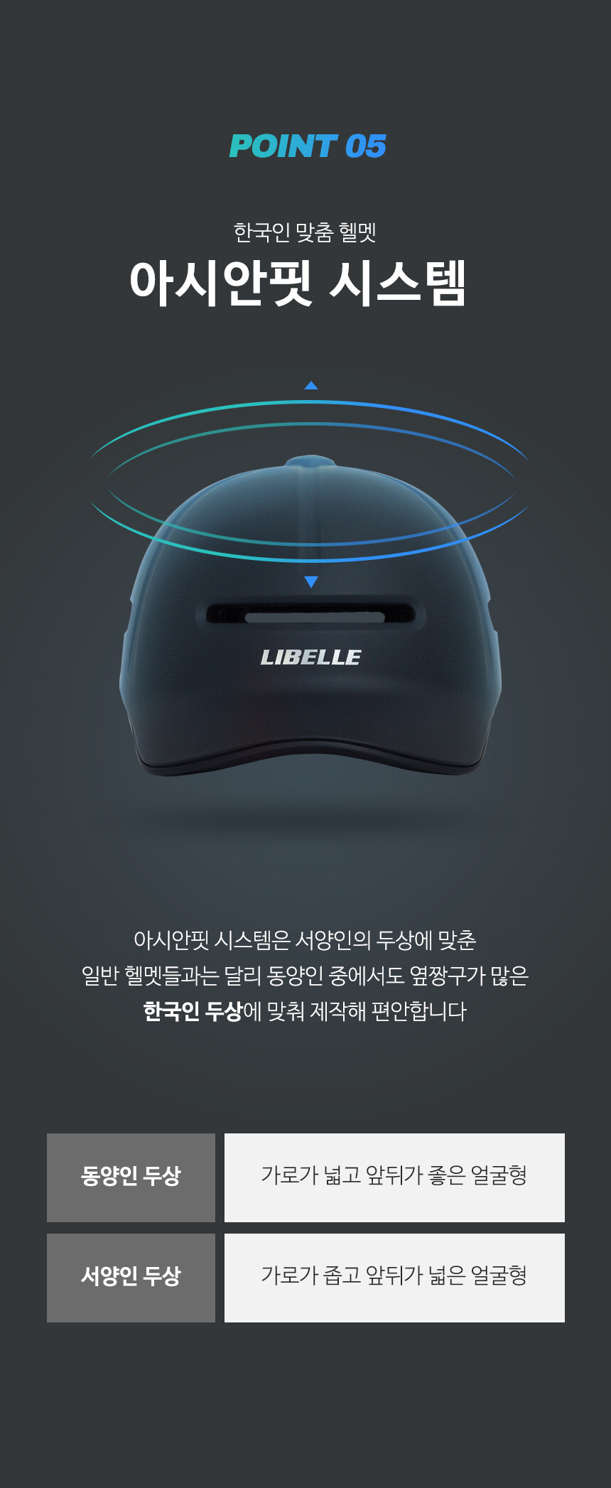 더 섬세한 사이즈 조정이 가능한 리벨르 헬멧은 상하 조절기로 머리 크기에 상관없이 모두 착용하실 수 있으며 뒤 짱구인 분들도 편안하게 조절하여 사용하실 수 있습니다.